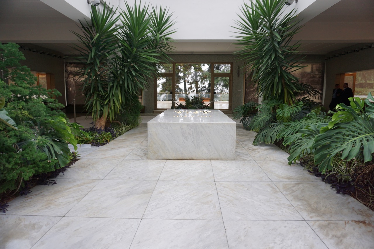 Geen toestanden als bij het mausoleum van Lenin. Geen wacht, je kunt er rustig in je eentje naar binnen en foto’s maken. Het is een zeer bescheiden gebouw, zeker naar de maatstaven die voor de gemiddelde dictator gelden.