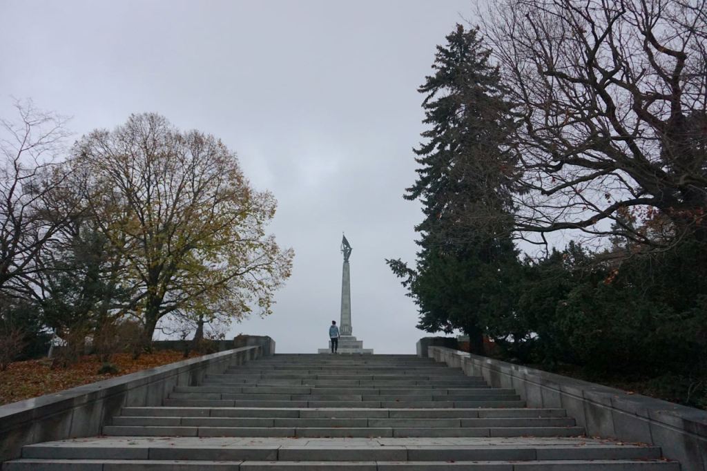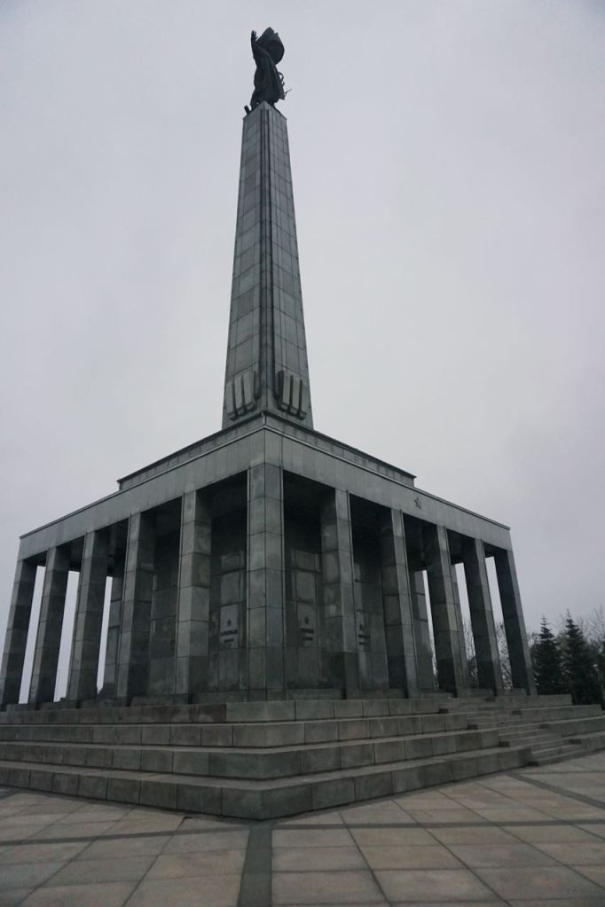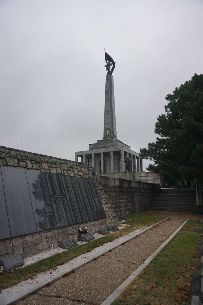 Slavín werd tussen 1957 en 1960 gebouwd als gedenk- en begraafplaats voor duizenden Sovjet-militairen, die in de laatste maanden van de Tweede Wereldoorlog omkwamen bij de bevrijding van Bratislava en omliggende steden. Dit soort oorlogsmonumenten voor de bevrijders in typisch Stalinistische stijl zie je overal in het Oostblok. Slavín mag er zijn en wordt – niet overal vanzelfsprekend – keurig onderhouden.
