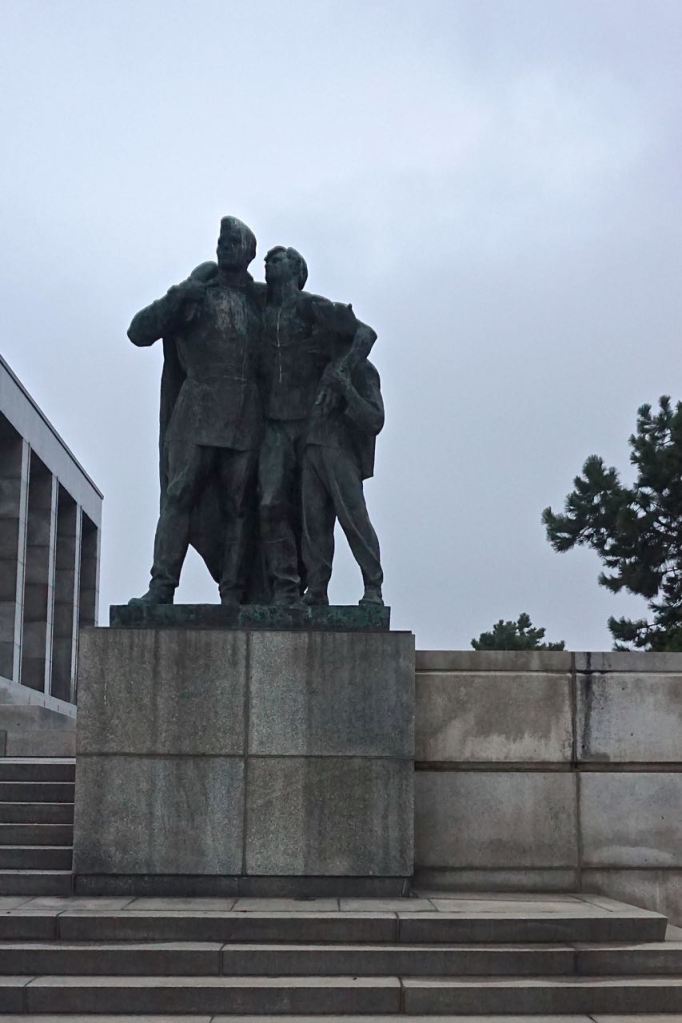 Het is een imponerend monument met een groot centraal gebouw waarop de namen van de bevrijde steden staan. Je hebt het als je er voor staat niet zo door, maar de obelisk is 42 meter hoog en het beeld van de soldaat nog eens 12,5 meter. Erg imposant. Er zijn verder verschillende beeldengroepen in typische Sovjetstijl en andere mooie details te zien.