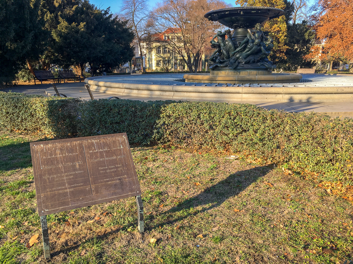 Het DDR-museum ligt aan een groot verkeersplein met een parkje in het midden, waar tot 1994 een prachtig socialistisch monument stond ter ere van de bevrijders van platgebombardeerd Dresden, het Rode Leger. De geschiedenis heeft dit stukje geschiedenis laten verdwijnen. Maar in ieder geval staat er nog een herinnering aan dit stukje geschiedenis.