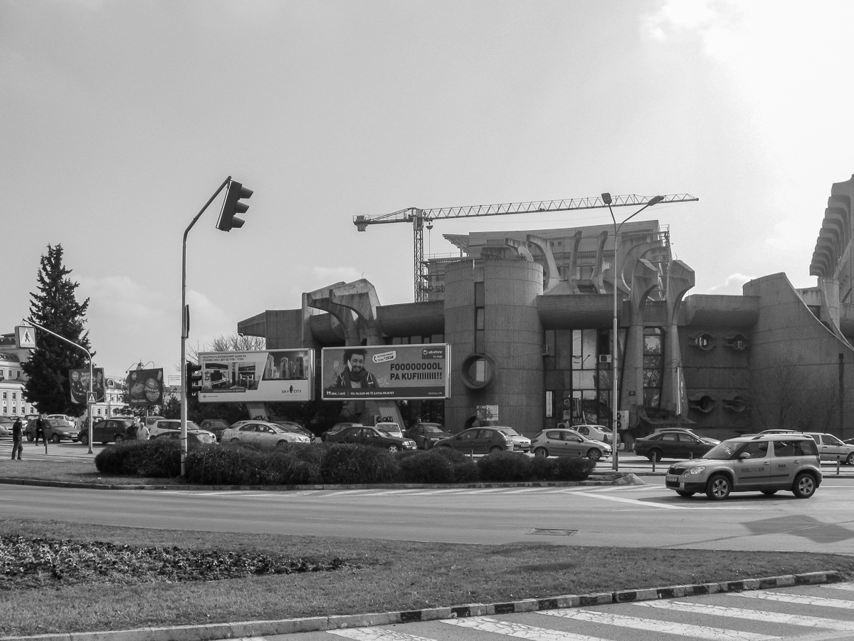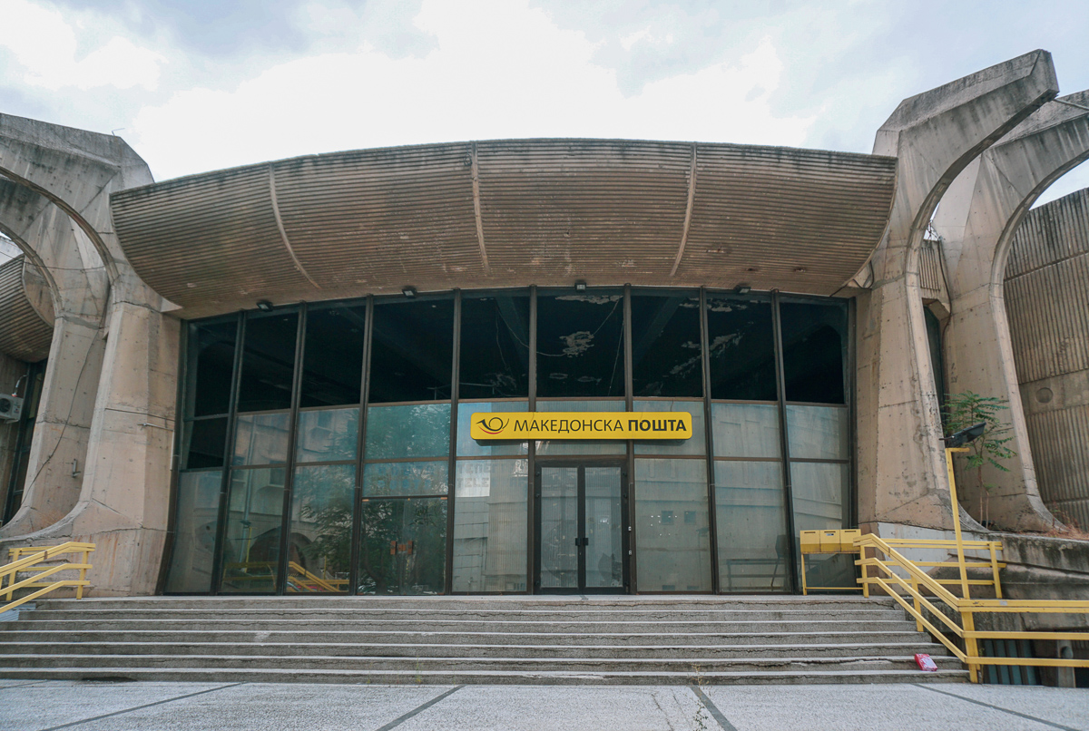 Het centrum van Skopje is de afgelopen jaren helemaal volgebouwd met standbeelden en neoklassieke façade-architectuur langs de rivier. Disneyland aan de Vardar. Alles voor het toerisme. De vaak brutalistische wederopbouwarchitectuur van Skopje is niet bepaald Disneyland. Renovatie van het Postkantoor zal nog wel even op zich laten wachten.