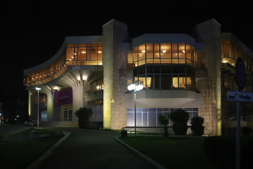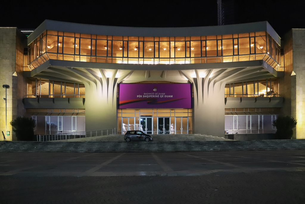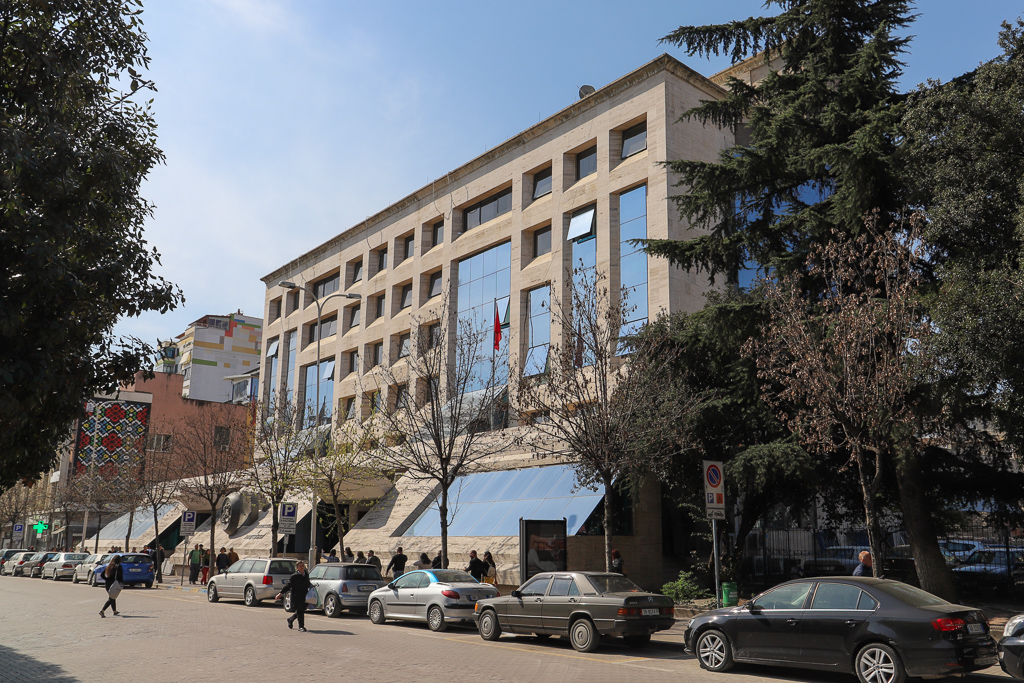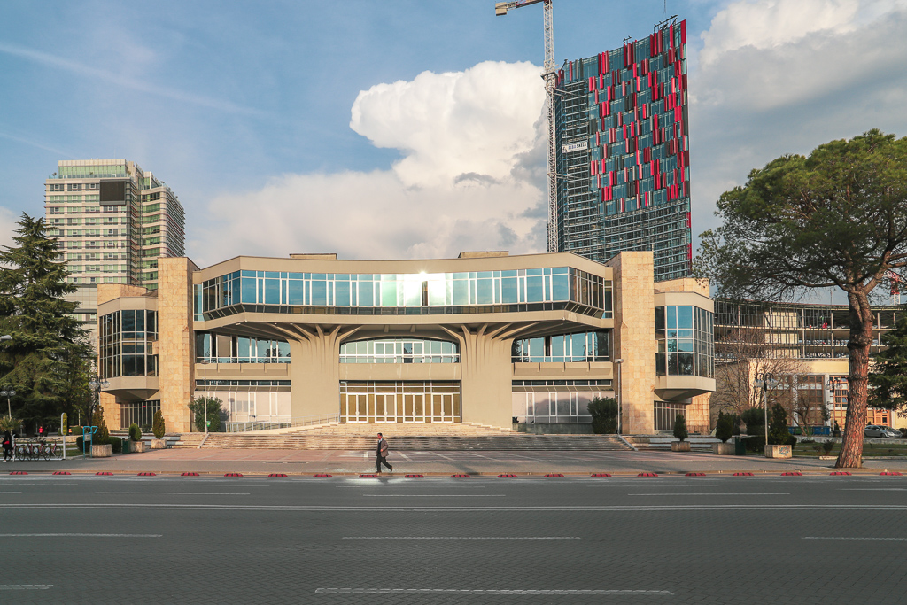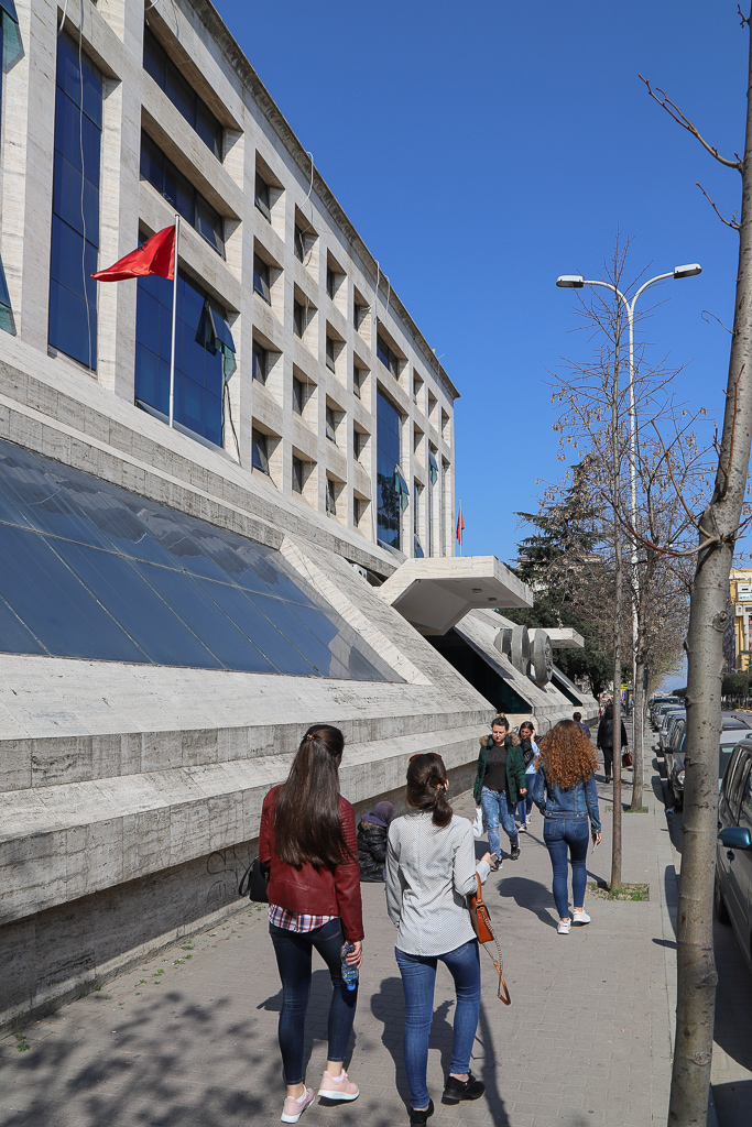 Als je na het uitstapje in het Bllok weer terugkeert naar Bulevardi Dëshmorët e Kombit en verder de stad uitloopt, kom je langs een van mijn favoriete socialistische gebouwen van Tirana. Postmodern of socialistisch modernistisch. Het is oorspronkelijk gebouwd als plaats voor de congressen van de Arbeiderspartij.