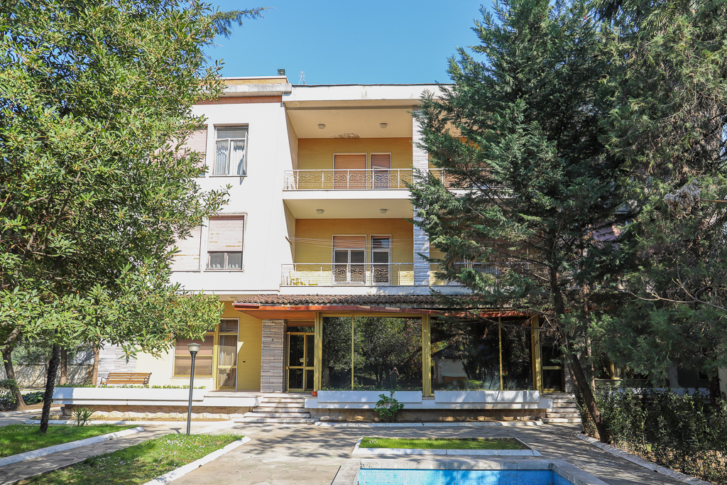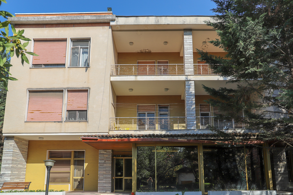 Hoxha’s villa stamt uit de dertiger jaren en is gebouwd naar Italiaanse ontwerp. Het is best een bescheiden gebouw voor een dictator. In de zestiger jaren is de villa aan de achterzijde uitgebreid, waar Hoxha toen ging wonen. Dit deel grenst ook aan de tuin waar Hoxha in zijn rolstoel zijn laatste adem uitblies. Je komt er als je linksom het Lincoln Instituut de tuin in loopt.