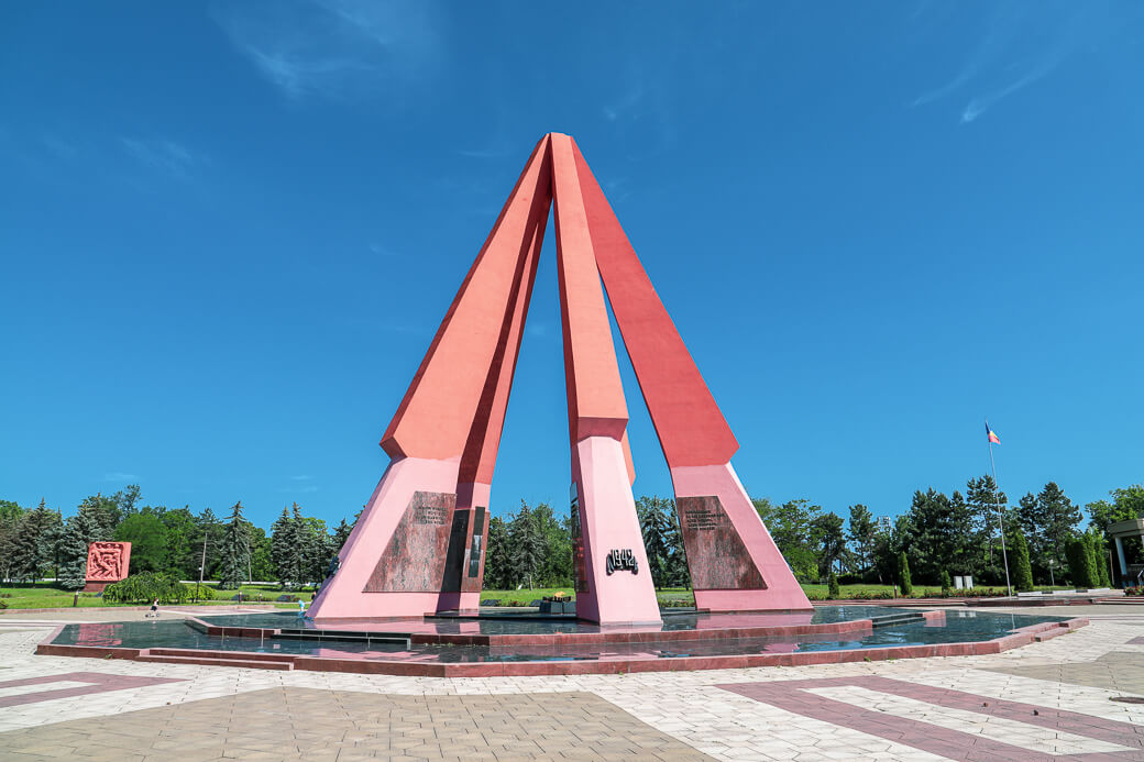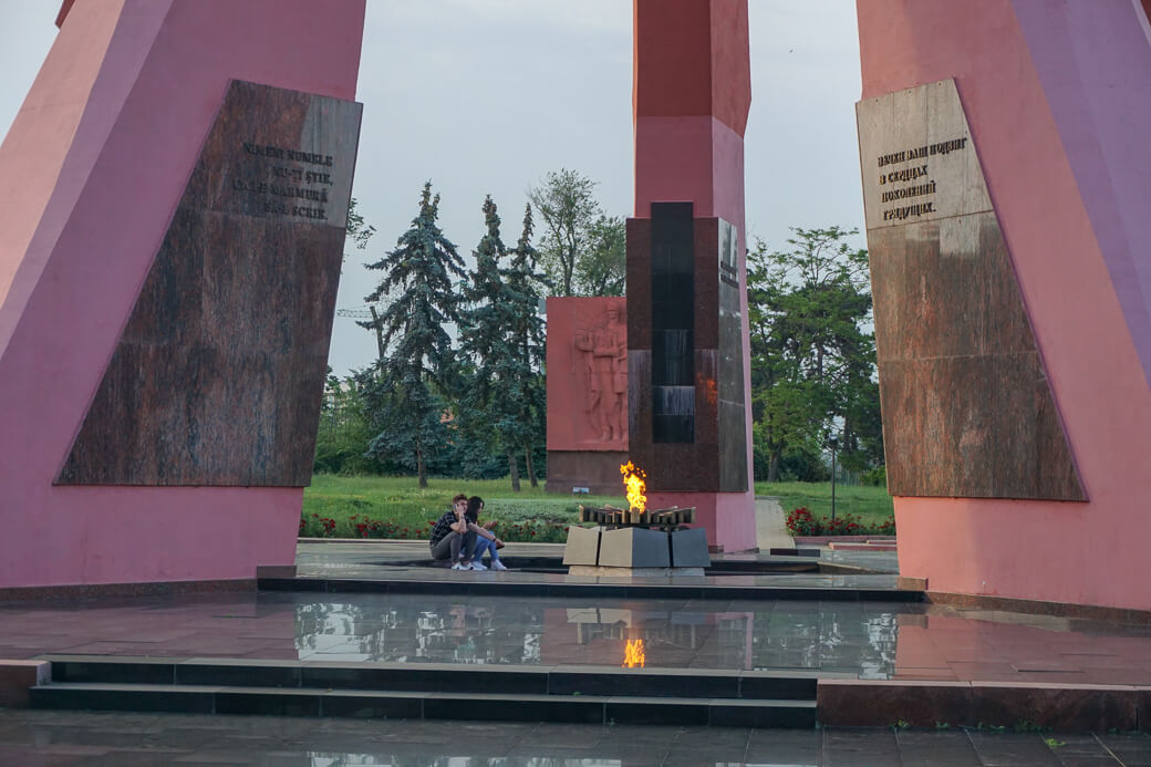 Het Herdenkingcomplex de Eeuwigheid – Complexul Memorial Eternitate – eert de soldaten van het Rode Leger die vielen tijdens de bevrijding van Moldavië van Duits-Roemeense troepen. Tot voor kort stond er een erewacht bij het enorme monument met de vijf geweren. Zou het door de verslechterde relatie met Rusland komen dat die zijn verdwenen?