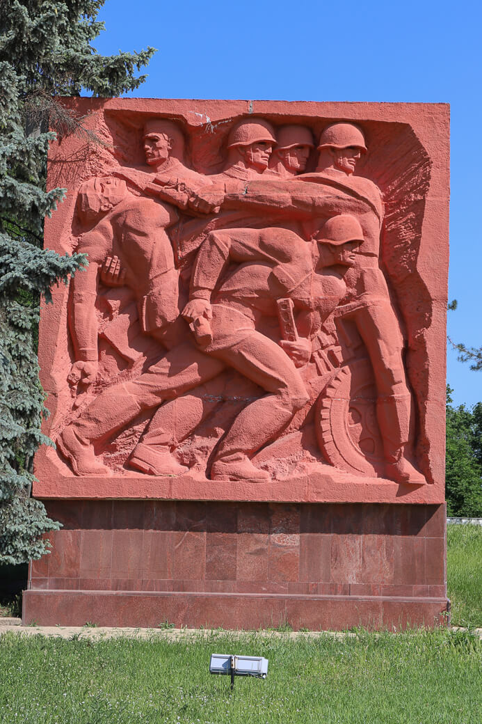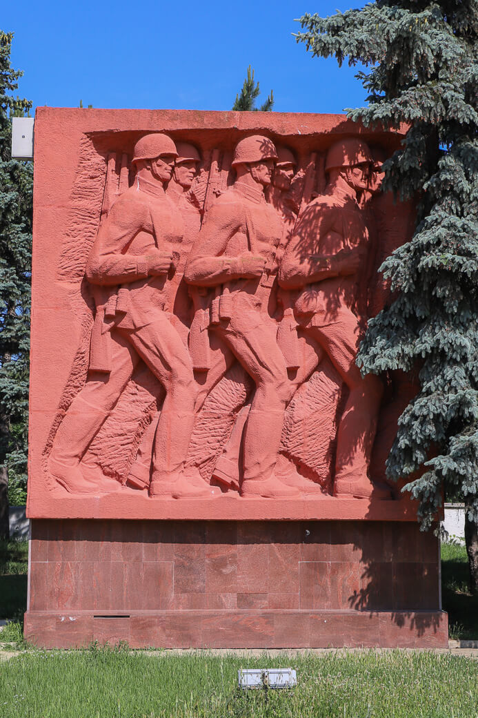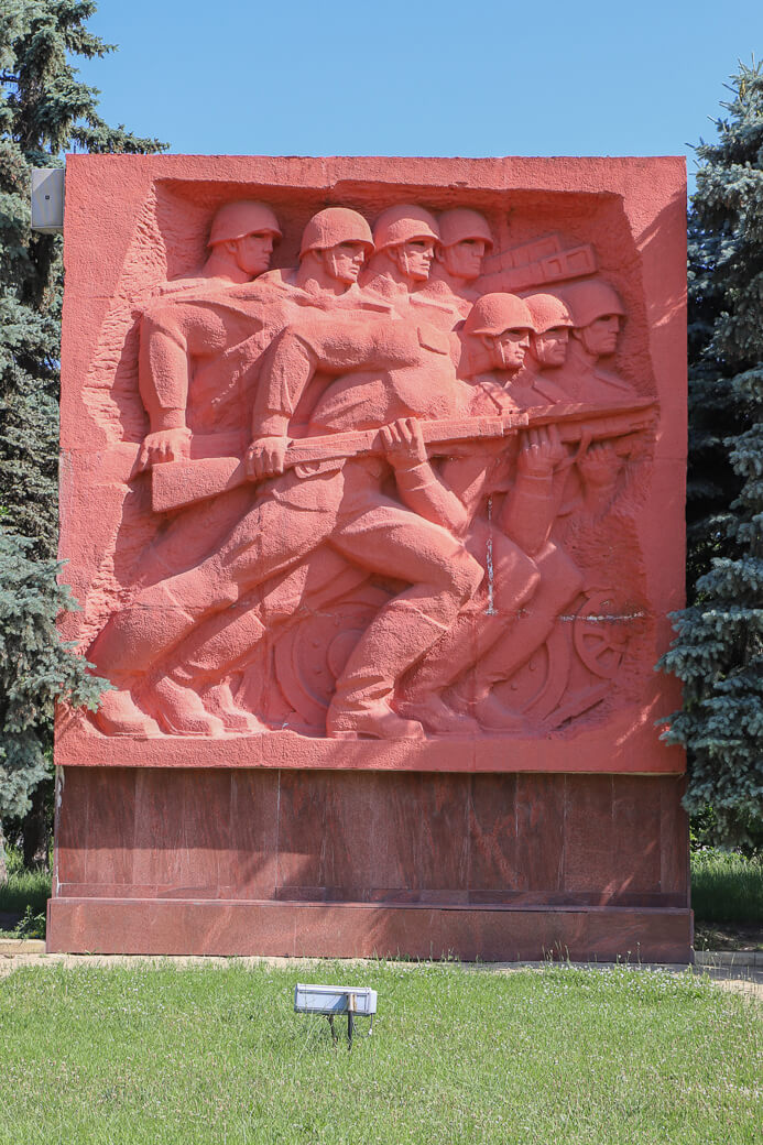 En de monumenten zijn nog niet op: een paar honderd meter bij Eternitate vandaan vind je de vervallen Cinema Gaudeamus, op een plek die tot 1958 deel uitmaakte van de Centrale Begraafplaats. Voor Gaudeamus staat het indrukwekkende monument Vechters voor de Sovjetmacht, met archetypische socialistisch-realistische reliëfs. Herdenken en gedenken in de Sovjet-Unie: waar een groot land groot in kan zijn.