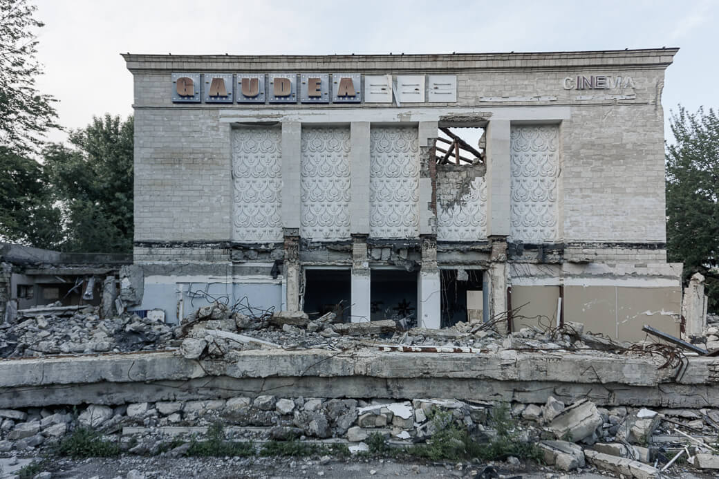 Over de Strada Frumoasa loop je door de goudkust van Chisinau richting centrum. Voor Cinema Gaudeamus – binnenkort afgebroken, en gelegen op een plek die tot 1958 deel uitmaakte van de Centrale Begraafplaats – staat het monument Vechters voor de Sovjetmacht, met archetypische socialistisch-realistische reliëfs.