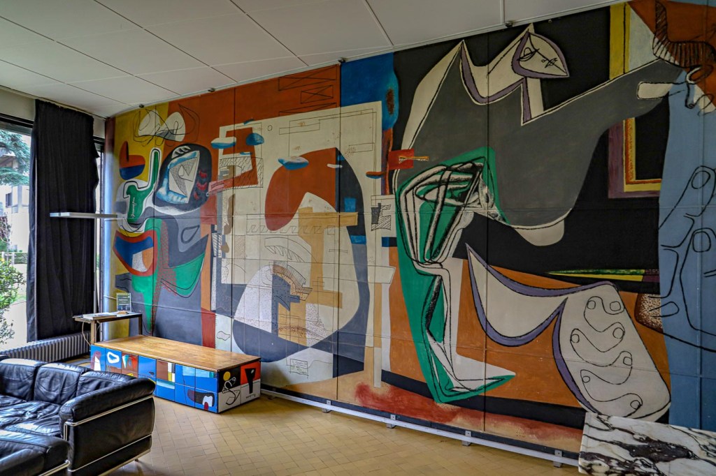 Voor 2 euro kun je een kijkje nemen in een origineel door Perriand ingerichte studentenkamer. Spartaans, maar voor die tijd best luxe, want met eigen douche. De kleurrijke muurschildering van Le Corbusier en de eveneens door hem beschilderde kistbanken zijn prachtig.