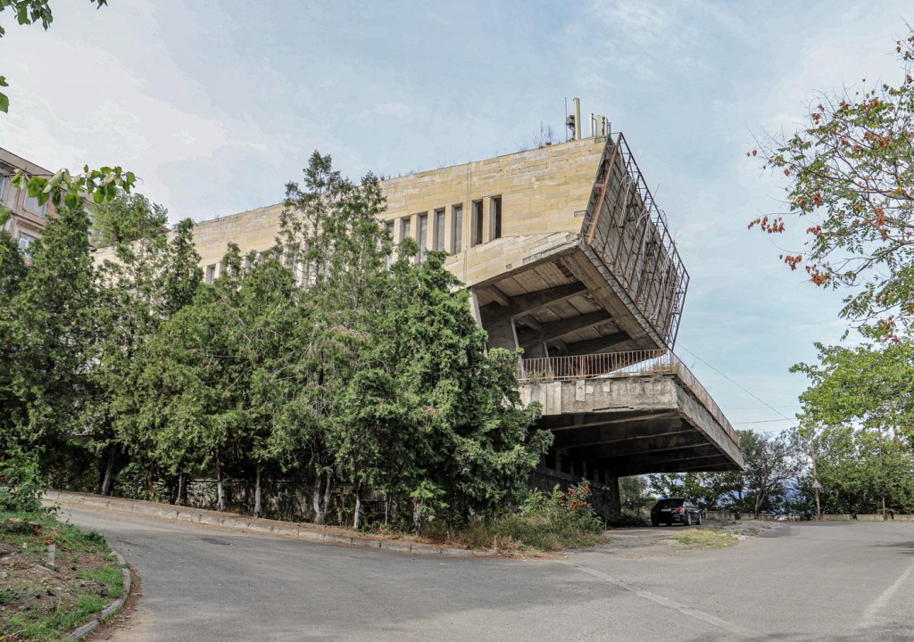 Als je op internet zoekt op brutalistische architectuur in Tbilisi – Georgië – komen het Auditorium van de Technische Universiteit en het Archeologisch Museum gegarandeerd naar boven. Het Auditorium staat stoer maar vervallen op een heuvel. Het groteske Disney-eske reliëf van Daedalus – met gouden vleugels – is van de gevel verwijderd. De gevel van het Archeologisch Museum ziet er juist weer piekfijn uit. Alsof hij vanochtend nog is gezandstraald.