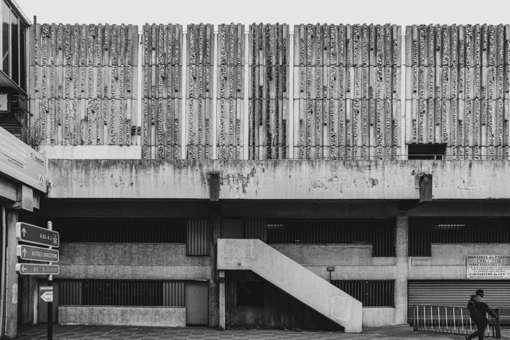 Vanaf metrohalte Bobigny-Pablo Picasso loop je westwaarts langs het Centre Commercial, een brutalistische moloch van een winkelcentrum die niet voldoet aan algemeen geldende architectonische schoonheidsidealen, maar als je van versleten corduroy-beton houdt – ja, dat bestaat en staat voor geribbeld beton! – en strakke rechte lijnen, dan kun je je hart ophalen.