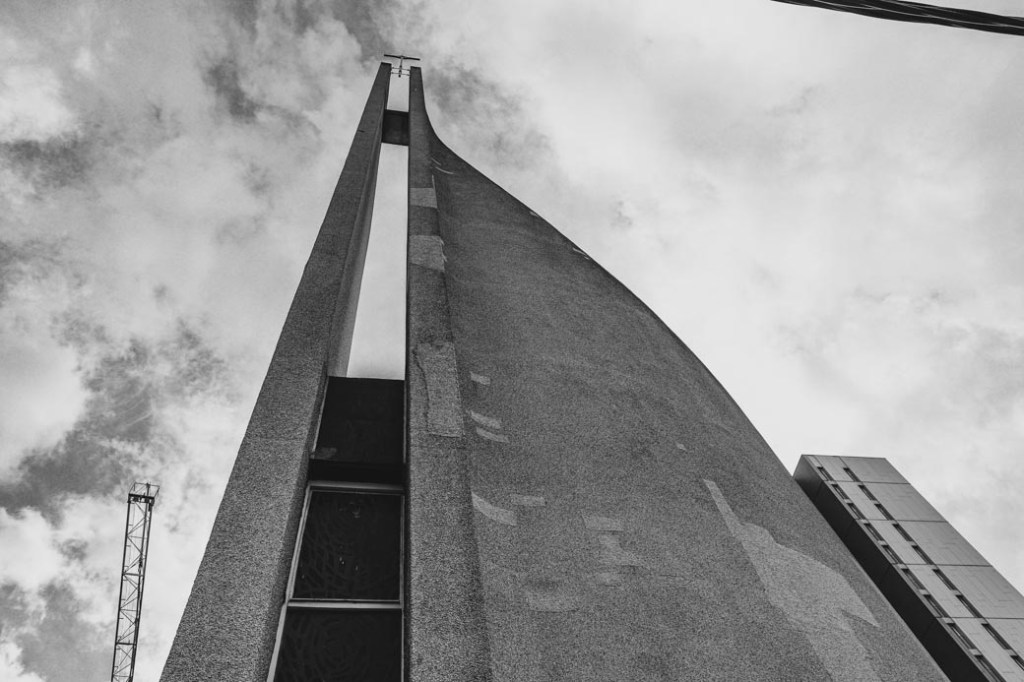 De kerk ligt aan de Avenue Karl Marx, we waren al de Boulevard Lenin overgestoken, voor de Bourse du Travail steek je de Avenue Jean Jaurès over, genoemd naar een Franse socialist uit de jaren dertig. In een buurt met zulke namen past een architect met een socialistisch hart: de Braziliaan Oscar Niemeyer, een van de godfathers van de moderne architectuur. Niemeyer was in 1964 Brazilië ontvlucht na een staatsgreep en zocht zijn refuge in Frankrijk, waar hij een drietal gebouwen ontwierp, waarvan twee in Parijs.