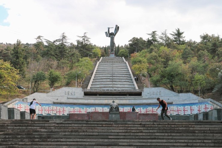 Het gigantische Monument van de Overwinning in Vake Park werd in de jaren tachtig gebouwd ter nagedachtenis aan de 300.000 Georgiërs die sneuvelden in de Grote Patriottische Oorlog. Best weinig eigenlijk, op een totaal van bijna 25 miljoen slachtoffers voor de gehele CCCP. De toenmalige minister van Buitenlandse Zaken van de Sovjet-Unie, de Georgiër Sjevarnadze, wilde met het monument zijn loyaliteit aan de Sovjets bewijzen.