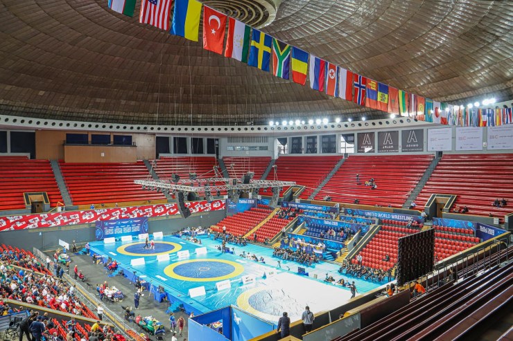 Als ik er ben val ik met de neus in de boter: het WK worstelen voor veteranen is in volle gang. Extreem potige senioren, soms breder dan hoog, hebben kleine pakjes aan die weinig aan de verbeelding overlaten voor wat betreft de hoeveelheid lichaamsbeharing. In Georgië en omringende landen – en elk land dat op stan eindigt – is worstelen een Grote Sport. Het is een bijzonder schouwspel, zo’n sport die je alleen van Studio Sport kent live te zien. In hoog tempo wisselen de mannen elkaar af in korte potjes duw- en trekwerk, waarbij inbreuk op elkaars persoonlijke ruimte norm en doel zijn.