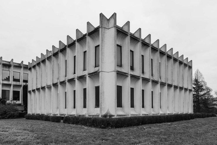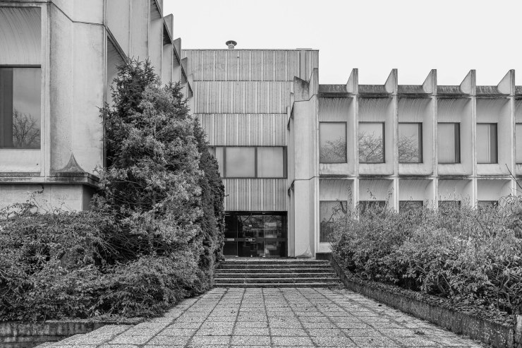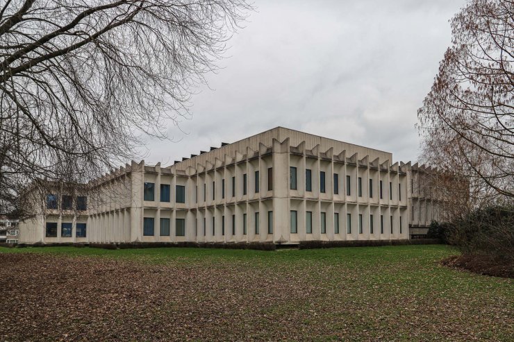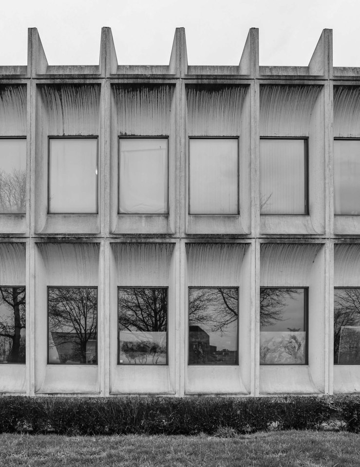 Het ontwerp was vernieuwend, expressief, beeldbepalend. Het gebouw is bekleed met opvallende prefab betonnen gevelelementen met plastische vormgeving en diepliggende ramen. Boven de entree zijn in het beton decoratieve groeven aangebracht. Het is een Gesamtkunstwerk: interieur, exterieur en ook de tuin en fonteinen bij de entree zijn allemaal op elkaar afgestemd. Ik ben niet naar binnen gegaan, maar zowel exterieur als interieur zijn nog in prima staat.