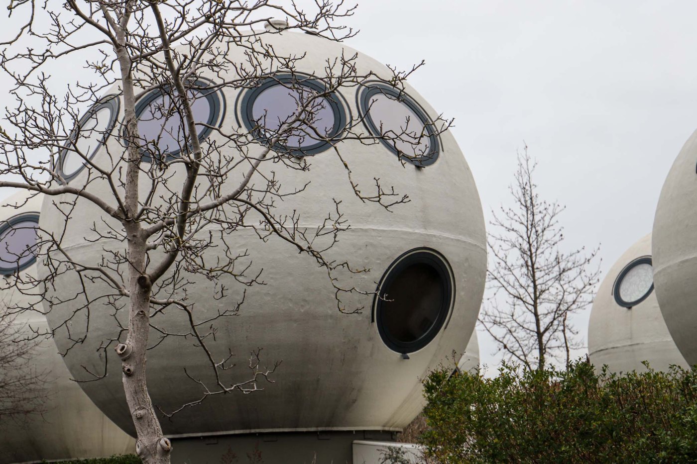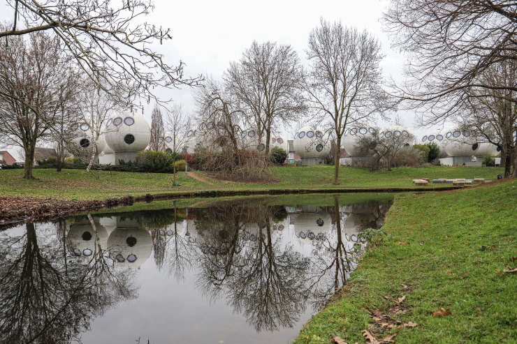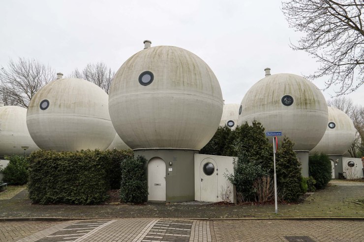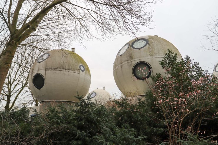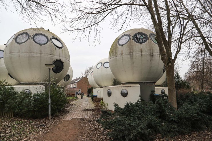 Het zijn kleine woningen, bedoeld voor een- of tweepersoonshuishoudens. De bol heeft een doorsnede van 5,5 meter en de vloeroppervlakte is 55 m2. De bollen bestaan uit drie prefab elementen: de steel en twee bolhelften, die alleen nog maar op locatie geassembleerd hoefden te worden. In 2010 is er een berging aan de bollen toegevoegd, die ook door Kreijkamp is ontworpen. Je ziet duidelijk dat ze nieuwer zijn. De bollen moeten node van mos, alg en andere aanslag ontdaan worden met de hogedrukspuit, de bergingen zijn beduidend witter.