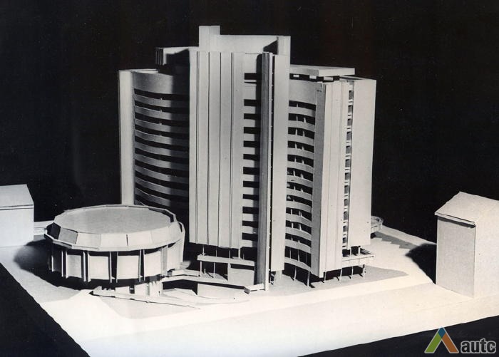 In de jaren tachtig werd de binnenstad van Kaunas gemoderniseerd onder leiding van A. Steponavičius. Bij die moderniseringsronde hoorde ook de bouw van een monsterhotel, want dat had Kaunas – een respectabele stad met bijna 300.000 inwoners en bovendien vóór WOII kortstondig de hoofdstad van Litouwen – nog niet. Het werd niet als een probleem gezien dat een hotel van die grootte niet echt paste bij de omliggende overwegend lage historische bebouwing.