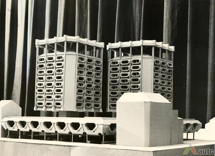 Op een Litouws blog stuitte ik op foto’s van de originele ontwerpen van Hotel Britanika. Het eerste ontwerp ziet er prachtig uit en lijkt met zijn golvende gevel te zijn geïnspireerd op het werk van Braziliaanse meesterarchitect Niemeyer. Ontwerp twee doet me met zijn gestapelde buizen denken aan het conservatorium van Montreuil, Parijs. Beide ontwerpen werden afgeschoten omdat de bouw te ingewikkeld zou zijn, en vast ook te duur.