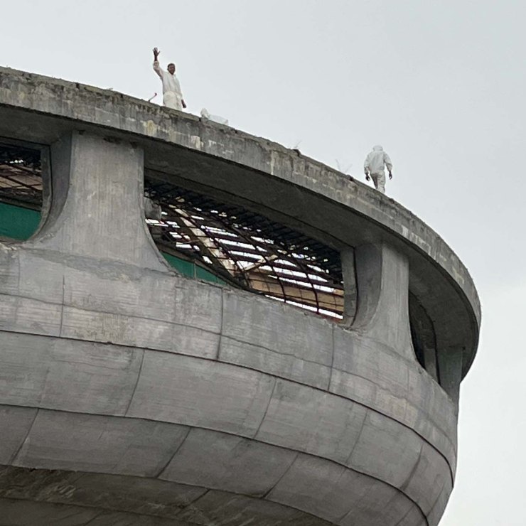 Het Buzludzha-monument is niet geopend voor publiek; dat is te gevaarlijk. Er wordt hard gewerkt aan het dak. Mannen in witte pakken zijn ongezekerd druk in de weer. Er is inmiddels een overkapping geplaatst over de binnenste ring van mozaïeken, waardoor ze beschermd zijn tegen de elementen. Een internationaal team is bezig met de restauratie van de mozaïeken, een gigantisch karwei. Plan is om ook de buitenste ring te overdekken. Ik weet niet of dat inmiddels gebeurd is. Als er genoeg fondsen zijn, wordt het complete dak vervangen. Donateurs zijn zeer welkom!