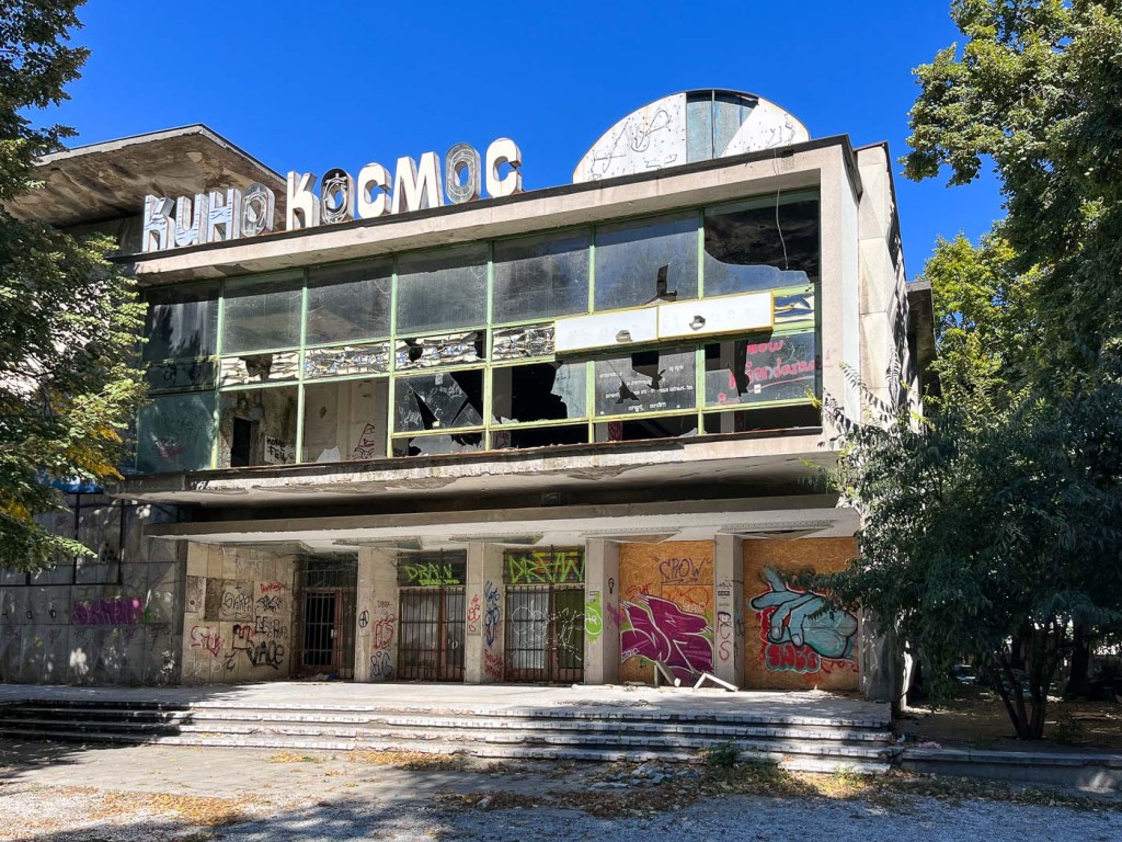 Kino Kosmos is een excellent voorbeeld van socmod architectuur op zijn Bulgaars. De in 1964 geopende uiterst luxe bioscoopzaal bood plaats aan ongeveer 1.000 mensen. In de foyer is de elegante wenteltrap te zien. Typisch Bulgaars zijn de ‘noppen’ aan de zijkant van het gebouw die een prachtige schaduwspel spelen. De letters op het dak boven de entree zijn origineel. Voorheen stond hier Кино Комсомол (Kino Komsomol, naar de onder Lenin opgerichte communistische jeugdbond), met bijna dezelfde letters kon hier Кино Космос (Kino Kosmos) van worden gemaakt.