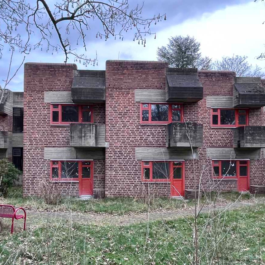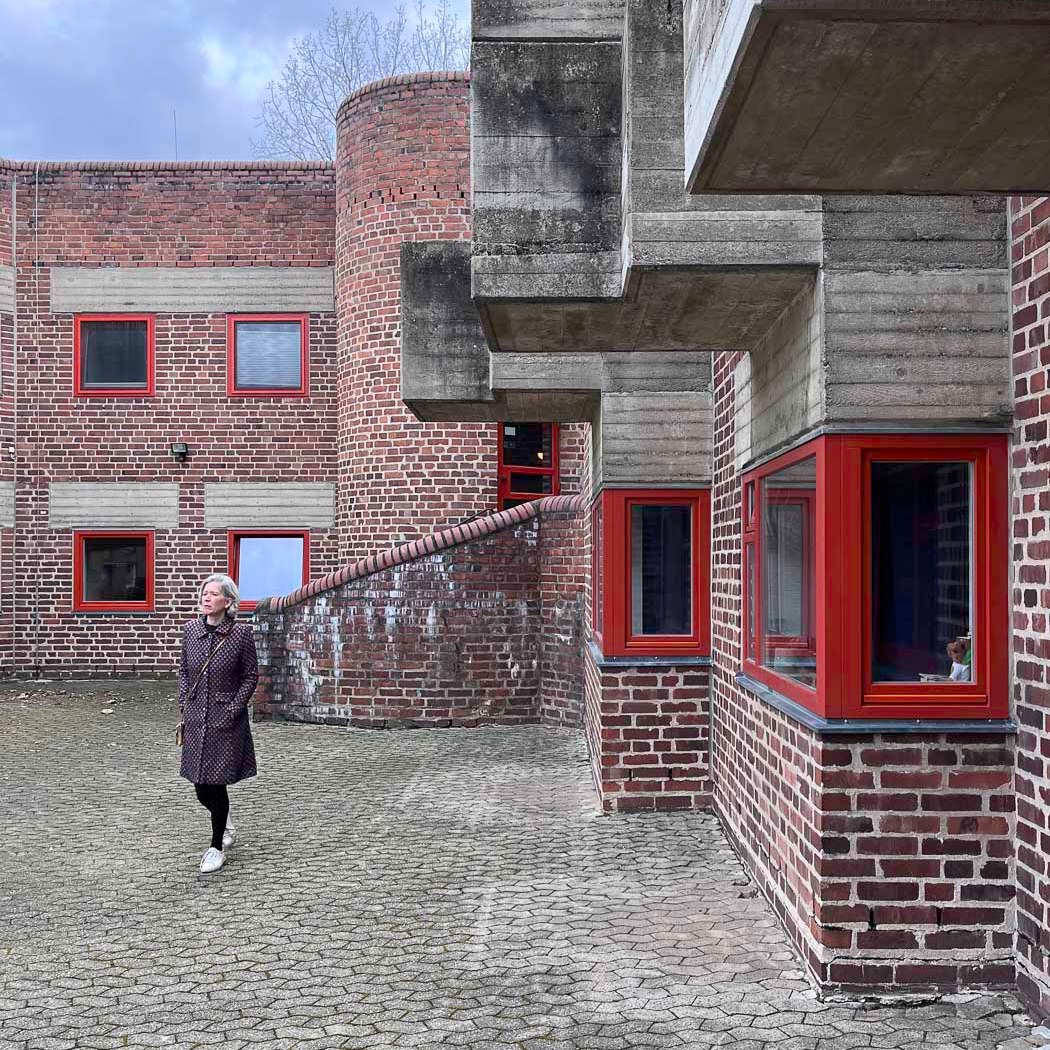 Op nieuwjaarsdag reizen we af naar Garath, een voorstad van Düsseldorf die begin jaren zestig uit de grond is gestampt. Op deze dag doet het niet heel gezellig aan. De voor het bejaardencentrum Sint Hildegardis ontworpen woningen staan er treurig bij, de betonnen balkons en uitstulpingen zijn schmutzig en met mos bedekt. Via een poortje komen we op het centrale plein. Links staat de kapel, rechts de kerk. De kapel ziet er uit alsof die door neanderthalers uit een rots is gehouwen. De kerkzaal heeft een grotachtige allure, alsof je in een steengroeve bent beland. Een betongroeve dan. Kerk, kapel en bejaardencentrum vormen een brutalistisch Gesamtkunstwerk van betonnen kerkenbouwer Gottfried Böhm.