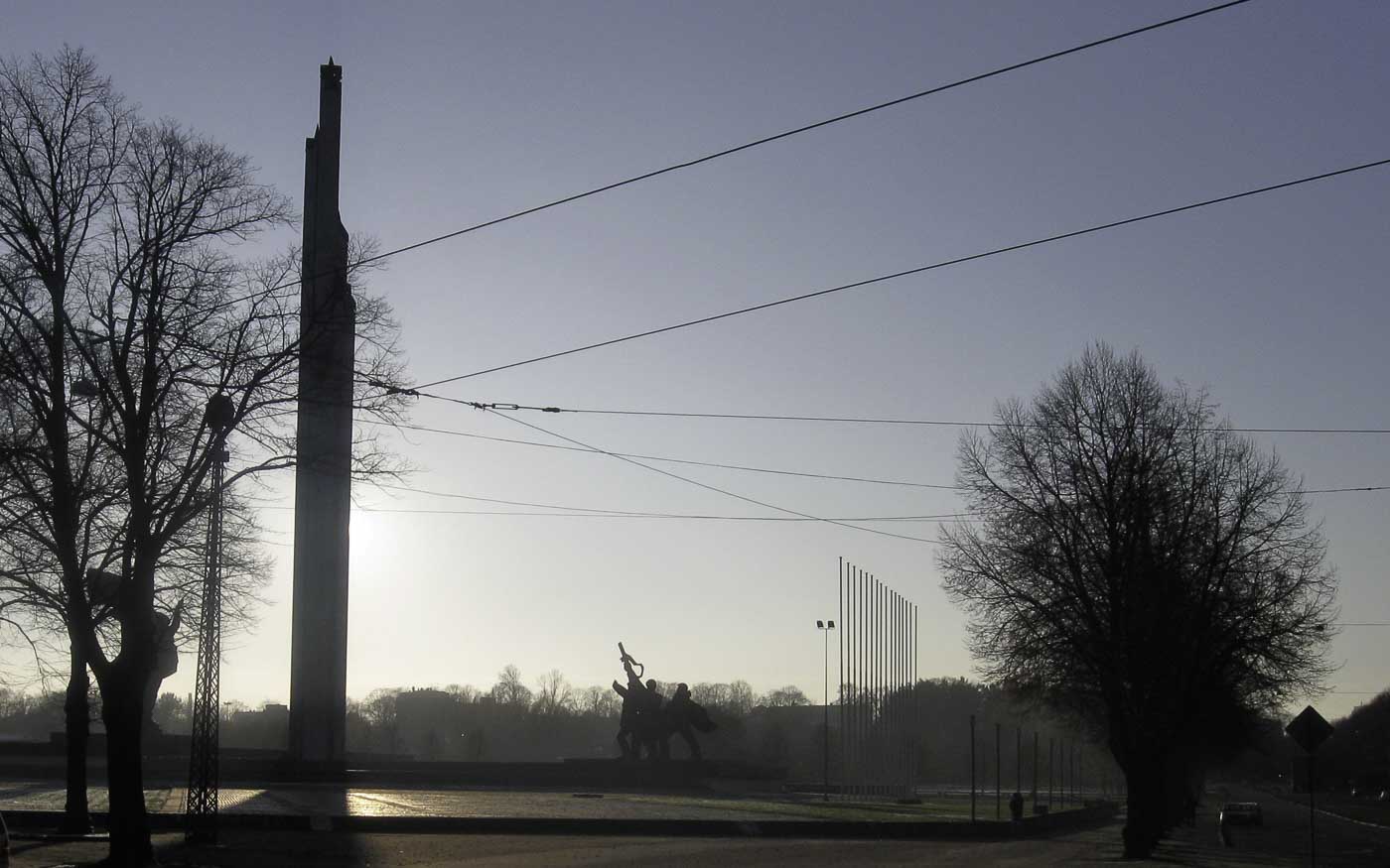 Ook het monument voor het Rode Leger in het Overwinningspark – zou de naam gewijzigd zijn? – is verwijderd. In 2012 lagen er nog bevroren bloemen bij het opzichtige uiterst Sovjetische monument uit 1985, met een bijna 80 meter hoge obelisk en twee socreal beelden van een soldaat en moedertje Rusland.