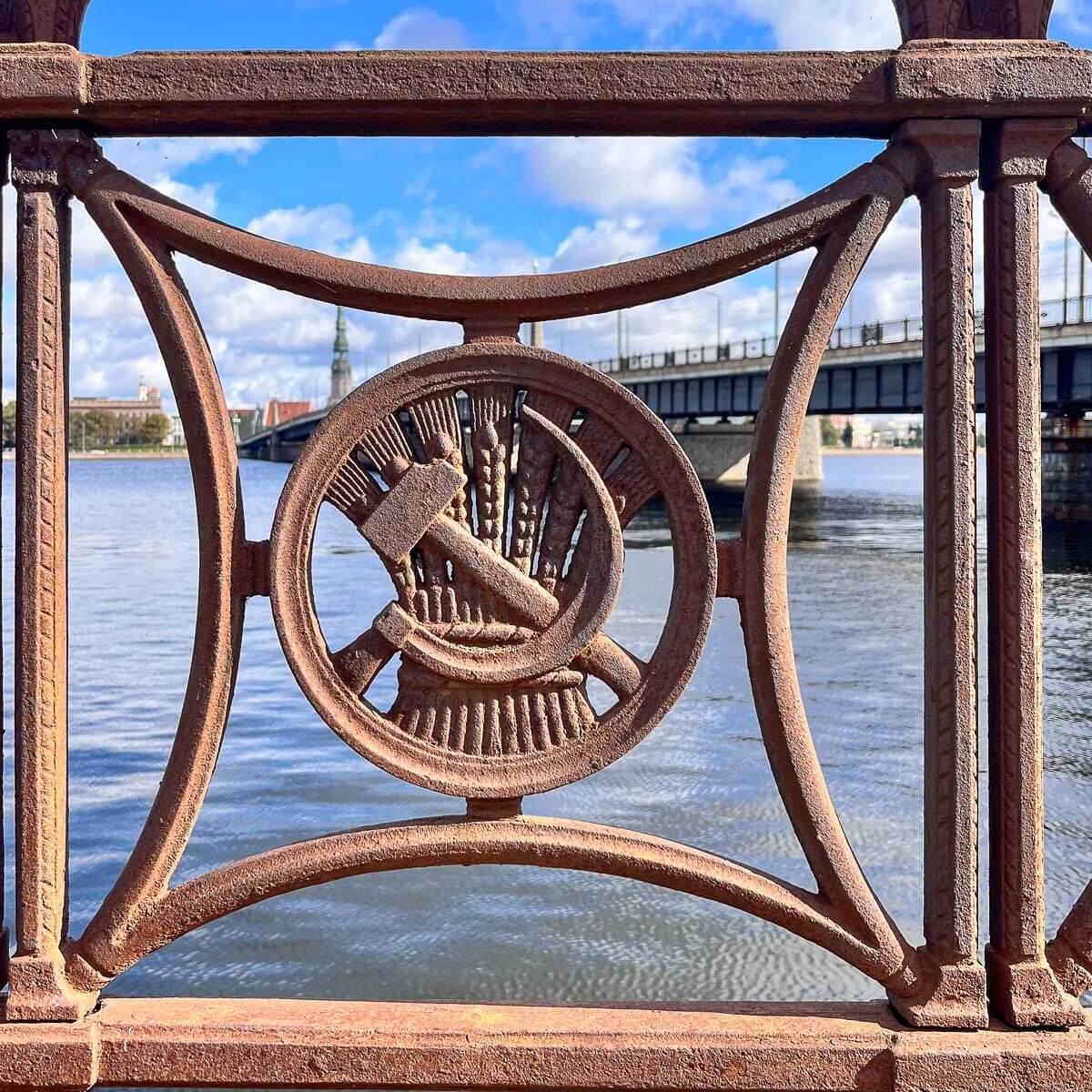 De meeste Sovjetmonumenten zijn ook in Riga uit het straatbeeld verdwenen, maar sommige monumenten die wel typisch Sovjet of minimaal socialistisch-realistisch zijn, zijn behouden omdat ze nog steeds – of weer – de juiste helden vereren. Zoals het monument voor de gevallenen tijdens de Bloedige Zondag van 9 januari 1905, toen een staking uitbrak die door de Tsaar wreed werd neergeslagen, evenals de demonstratie een paar dagen later. Ook het granieten monument voor de Letse schutters, voor het Museum van de bezetting van Letland, heeft de beeldenstorm tot nu toe overleefd. Sommigen zien ook dit beeld graag verdwijnen – té Sovjet – anderen vinden het prima dat Letten worden geëerd die vochten in de Eerste Wereldoorlog. Ook op de treinen in het treinmuseum zijn de Sovjetsymbolen niet van de lucht, maar dat is dan ook een museum. Alleen bij balustrades van de brug zie ik hier en daar nog een versiering met hamer en sikkel. Hier geen disclaimer; waarschijnlijk heeft men dit over het hoofd gezien. Eén hamer en sikkel is met slijptol verwijderd, maar dat is vast door een verzamelaar, een liefhebber, anders was dat vast niet zo netjes gebeurd.