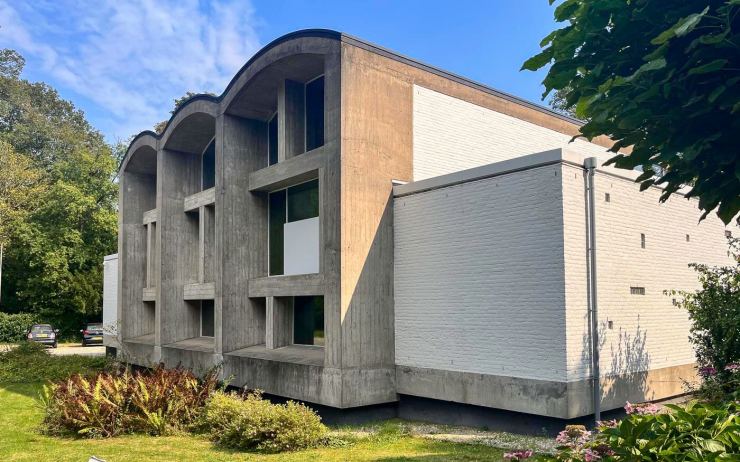 Vrijdag ging ik te kerke in Aerdenhout, waar al sinds 1958 het evangelie van het brutalisme wordt gepredikt in de Adventskerk, de nummer 14 van de brute top 20 van BRUUT – Atlas van het brutalisme in Nederland. Het was het enige gebouw uit de top 20 dat ik nog nooit had gezien. Fotograaf Bart reed er graag even voor om. En het was de moeite waard, ook al konden we de kerk niet in.