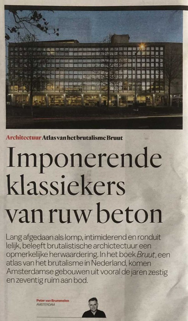 Goed nieuws! Er komt een tweede druk van BRUUT – Atlas van het brutalisme in Nederland. 4000 exemplaren gingen in korte tijd over de toonbank, waarna Bruut lange tijd niet verkrijgbaar was. De film the Brutalist zorgde voor extra veel aandacht voor brutalistische architectuur en meer vraag naar BRUUT. Nu ook brute toppers als stadhuis Terneuzen op de nominatie staan om rijksmonument, is het moment daar voor een tweede druk van BRUUT. WBooks brengt een nieuwe versie uit, in hetzelfde koffietafelboekformaat. In november – voor de feestdagen! – ligt BRUUT weer bij de boekhandel voor €59,95.